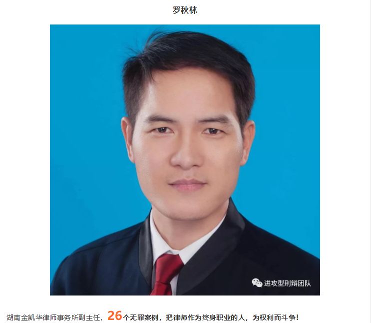在以罗秋林律师为领头人的进攻型刑辩团队中,罗律师的简介十分凝练: